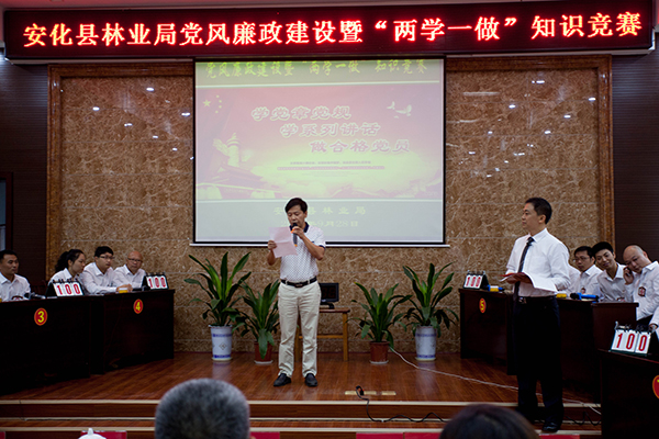 9月28日,mobile.28365 365举办了"党风廉政建设暨两学一做"知识抢答赛,由局机关、执法大队、林业站、场圃所组成的8支队的24名选手参加比赛。县委宣传部、组织部、县纪委、县总工会、县创卫办等领导应邀观摩比赛。