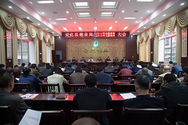 局党组书记、局长陶月平做题为《真抓实干,全面推进绿色安化和生态文明建设》工作报告。2015年,我县林业工作生态建设成效明显,资源保护全面加强,林业产业加快发展,林业改革稳步推进,税费征收基本完成,队伍建设逐步加强。2016年,是"十三五"的开局之年,也是湖南未来三年实施禁伐、减伐的开局之年,做好各项林业工作意义重大。我县林业系统将紧密围绕"健康森林、美丽湿地、秀美林场、绿色通道"四大主题建设,积极落实省市林业部门和县委、县政府的工作部署,严格实施精细化管理,大力提升林业现代化水平。